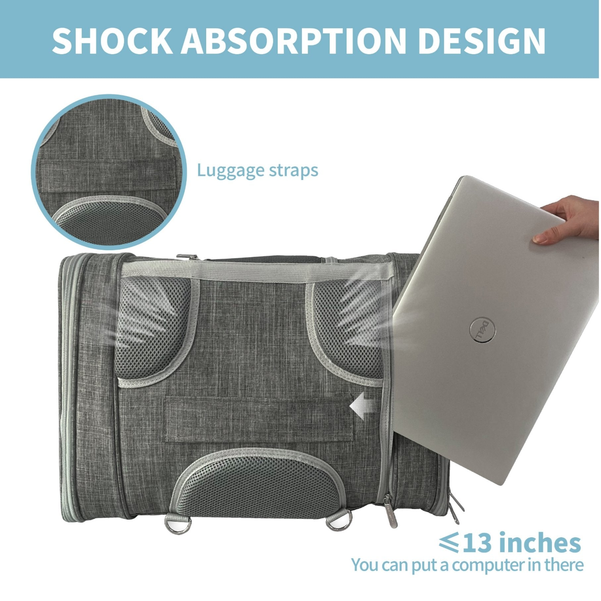 With mesh ventilation panels on all sides and a cozy faux fleece insert, your pet will stay cool and comfortable while you breeze through the terminal. Its lightweight yet durable build, self-locking zippers, and padded carry options make it equally convenient for road trips, vet visits, or daily errands.