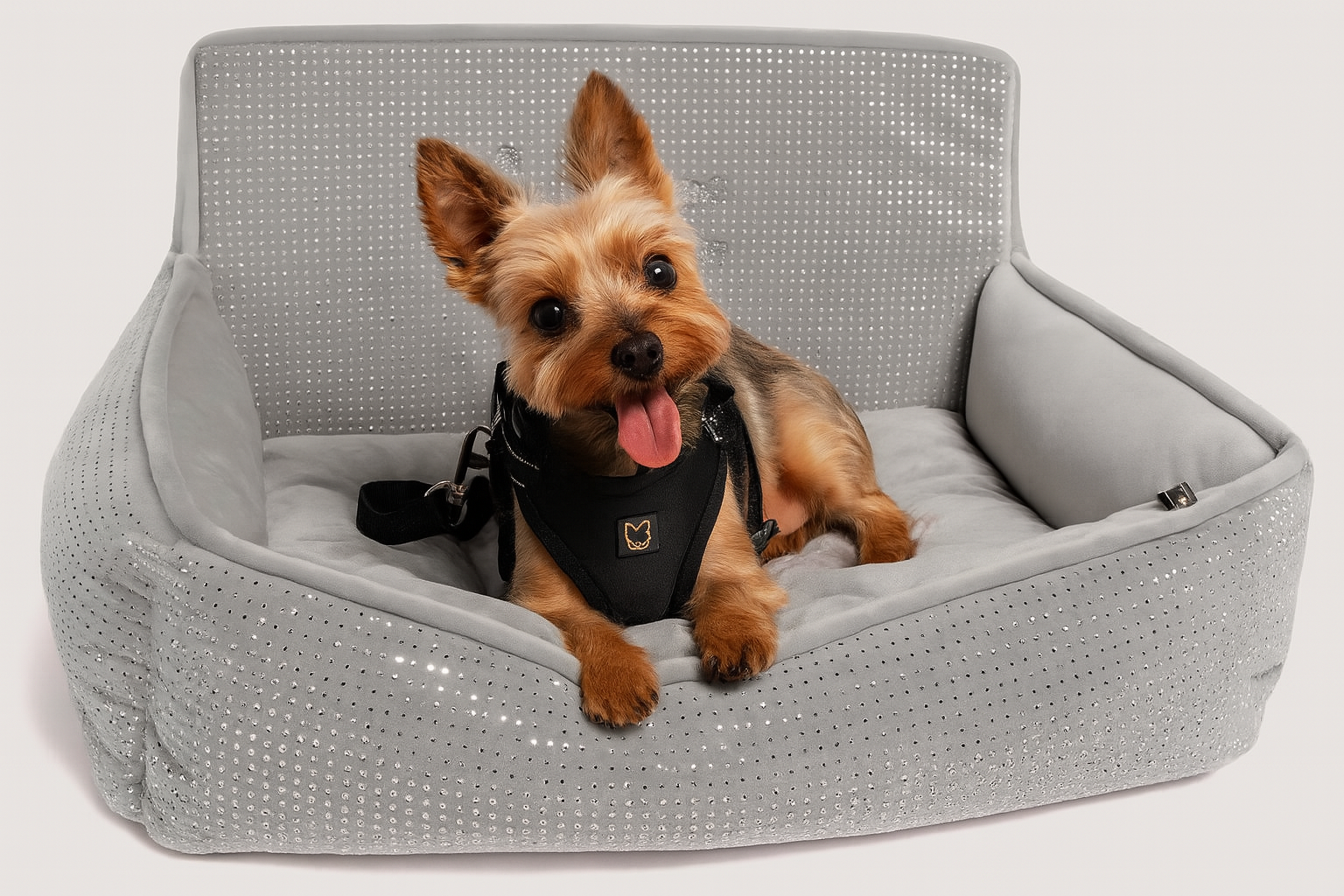 NANDOG Bling Dog Car Seat – Luxe Travel Booster with Safety Straps & Plush Cushioning (22" x 15")