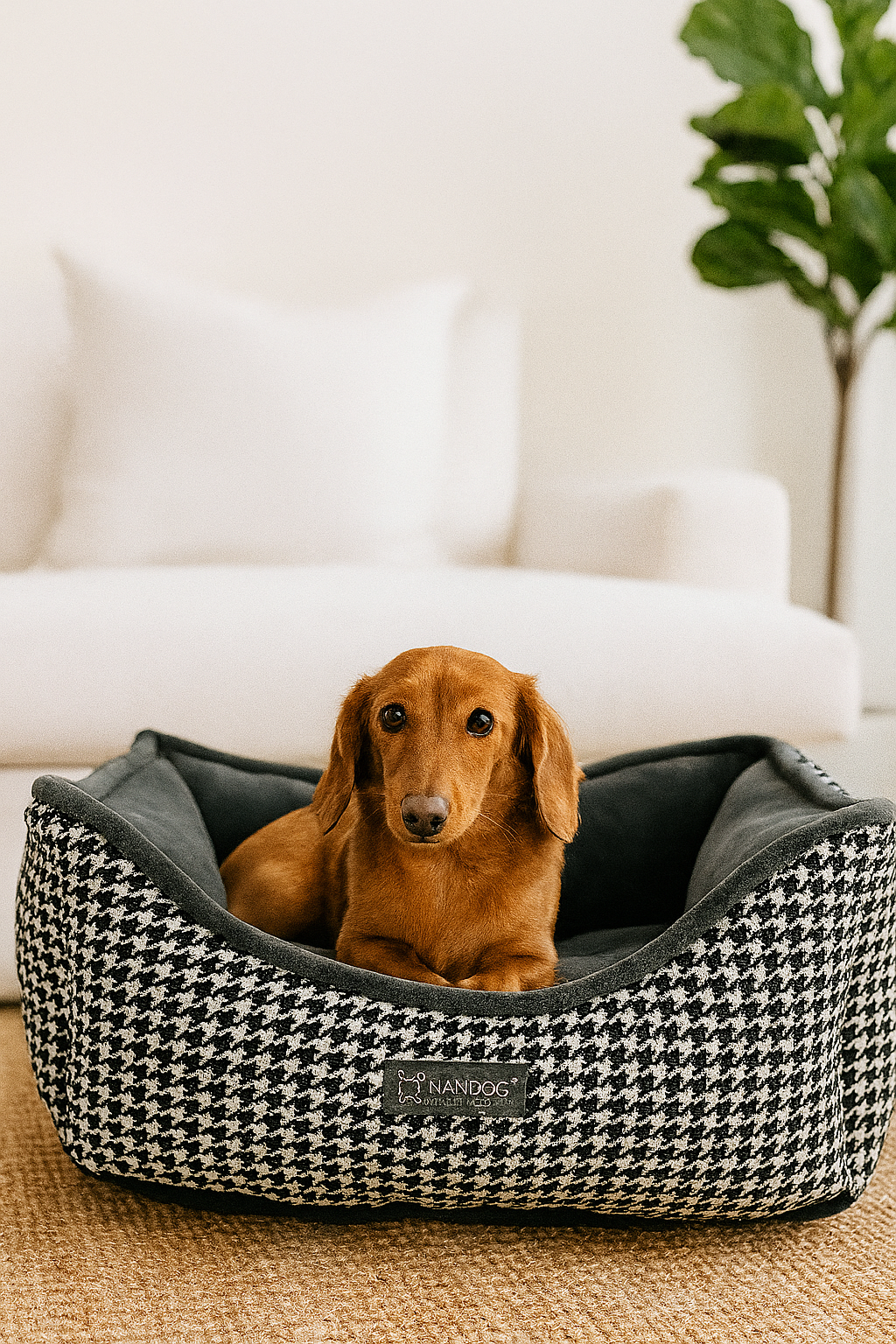 Make a statement in both style and comfort with the NANDOG Houndstooth Reversible Pet Bed, an elegant retreat for your furry companion. Designed for small to medium breeds, this luxury dog bed combines a timeless houndstooth pattern with an ultra-soft micro plush cloud fabric, making it the perfect mix of design and coziness.